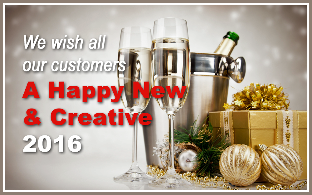 The year 2016's first day is here and therefore we take the opportunity to wish all our customers a happy new and creative 2016.